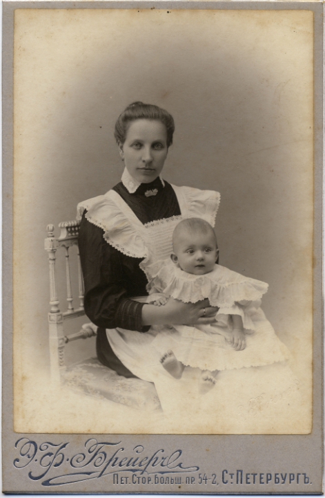 Наталия Павловна Дурдина с матерью и неизвестными женщинами у лестницы перед домом