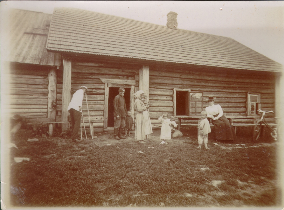 Наталия Павловна Дурдина с матерью и неизвестными женщинами у лестницы перед домом