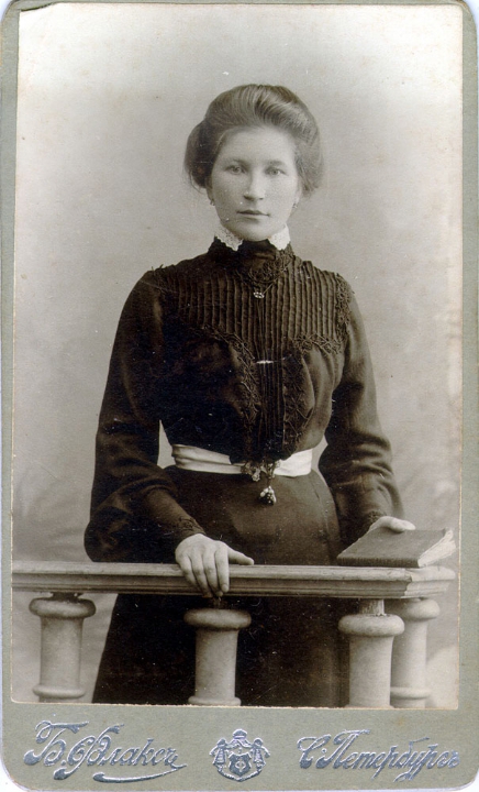 Наталия Павловна Дурдина с матерью и неизвестными женщинами у лестницы перед домом