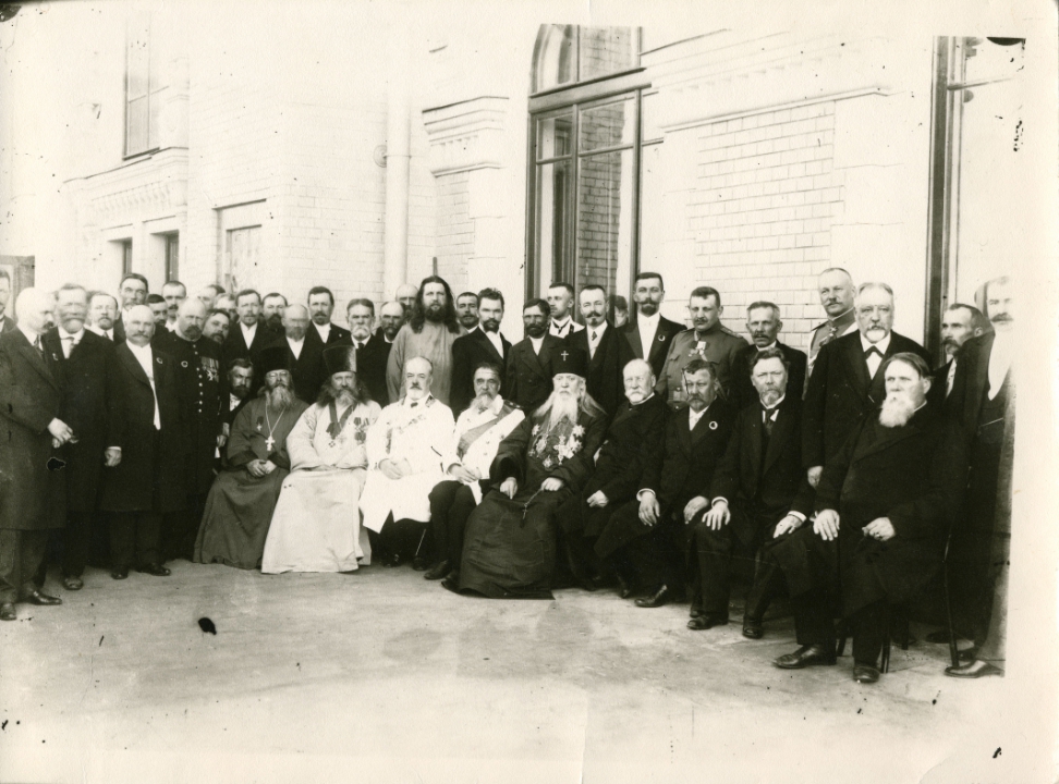 Наталия Павловна Дурдина с матерью и неизвестными женщинами у лестницы перед домом
