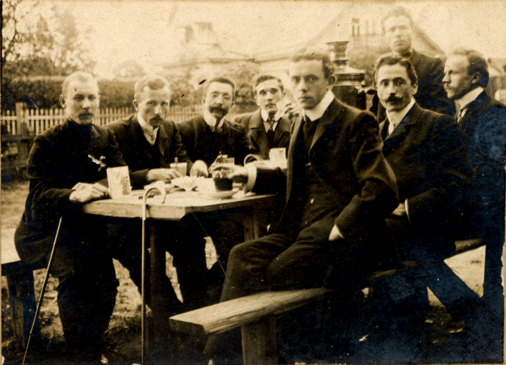 Наталия Павловна Дурдина с матерью и неизвестными женщинами у лестницы перед домом