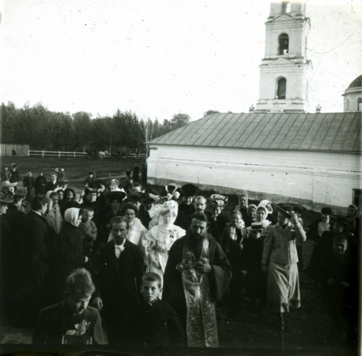 Наталия Павловна Дурдина с матерью и неизвестными женщинами у лестницы перед домом