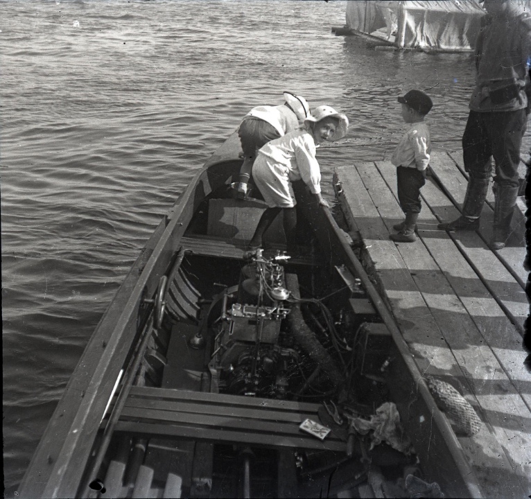 Мужчины на лодке с парусом Мужчины на лодке с парусом