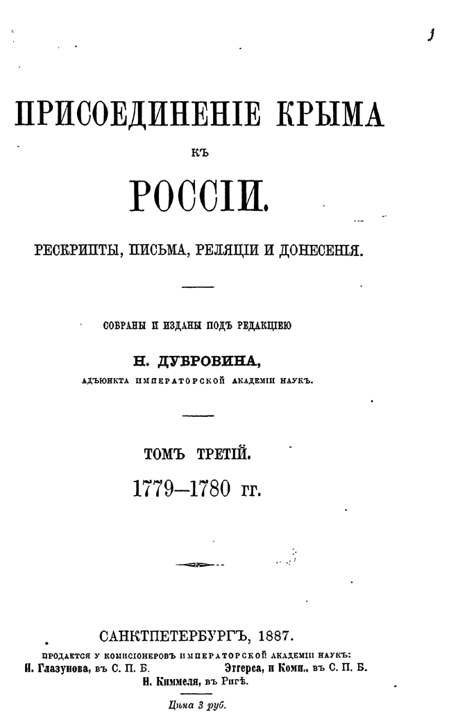 Присоединение Крыма к России: Том III. 1779—1780 гг.