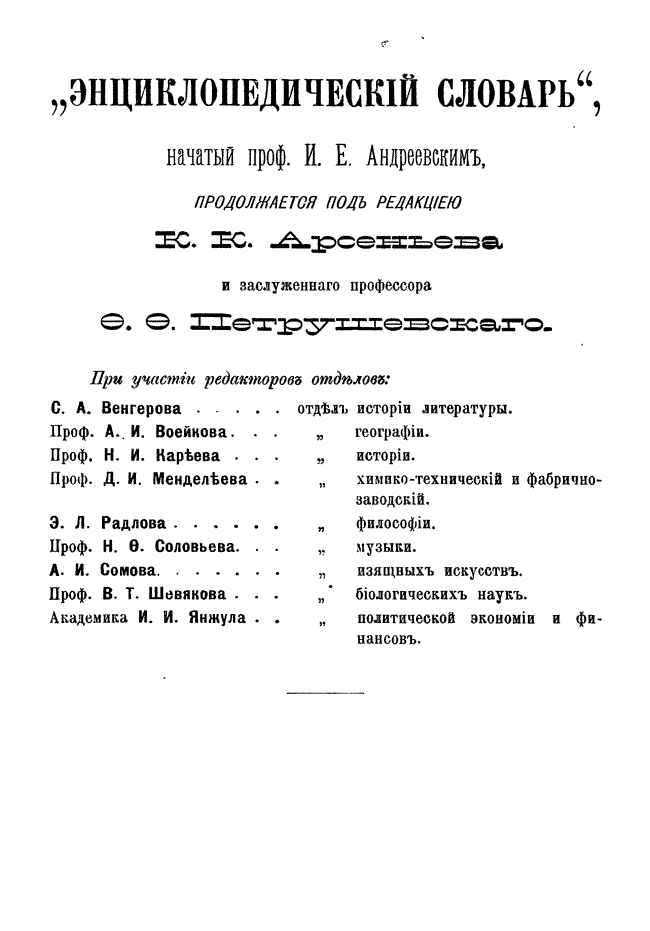 После кончины Андреевского новая редакция во главе с К. К. Арсеньевым и Ф. Ф. Петрушевским значительно увеличила число оригинальных статей и привлекла к сотрудничеству широкий круг общественно-политических деятелей либерального толка (от П. Н. Милюкова, В. И. Герье, Н. И. Кареева до легальных марксистов П. Б. Струве и М. И. Туган-Барановского, раздел философии вел крупнейший русский религиозный философ Вл. С. Соловьев), а также таких крупнейших ученых как Д. И. Менделеев, А. И. Бекетов, А. И. Воейков, Д. И. Анучин, Ю. М. Шокальский, Н. М. Книпович, А. О. Ковалевский, А. И. Советов, В. С. Соловьев и др.
