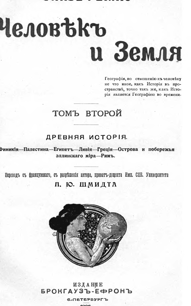 «...Мастерский свод всей литературы географии, замечательный как богатством данных и превосходных приложений — карт и рисунков, так и талантливостью изложения... «Человек и Земля» печатается одновременно на французском языке и в русском переводе».