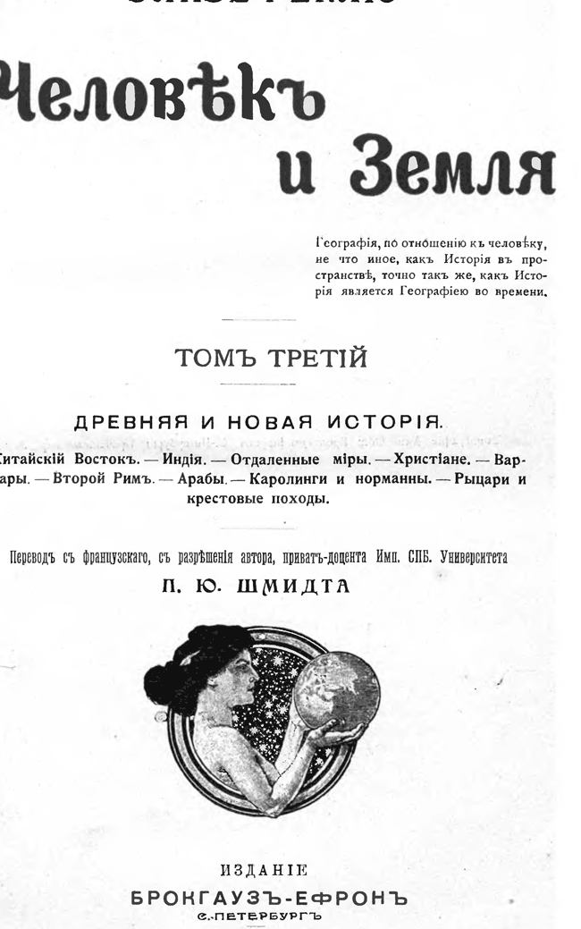 «...Мастерский свод всей литературы географии, замечательный как богатством данных и превосходных приложений — карт и рисунков, так и талантливостью изложения... «Человек и Земля» печатается одновременно на французском языке и в русском переводе».