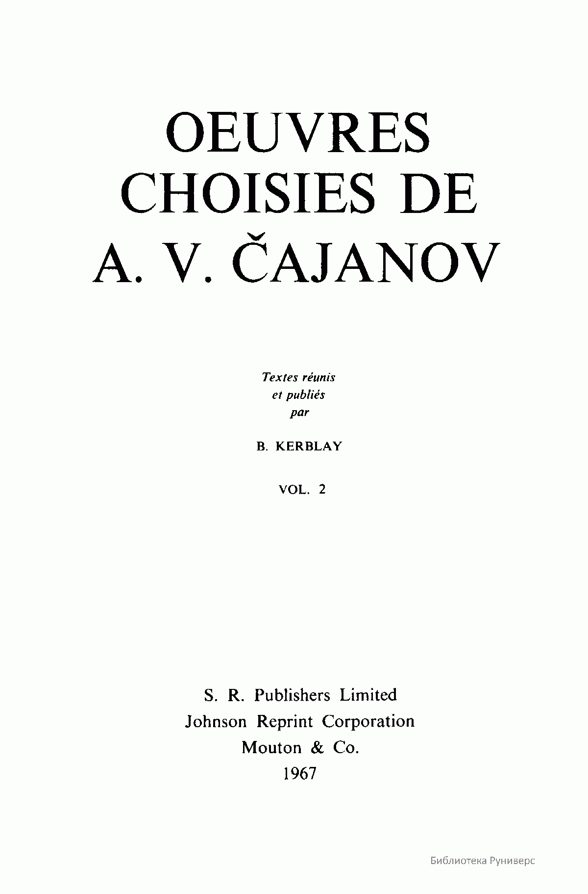 Oeuvres Choisies de A.V. Cajanov. Vol 2