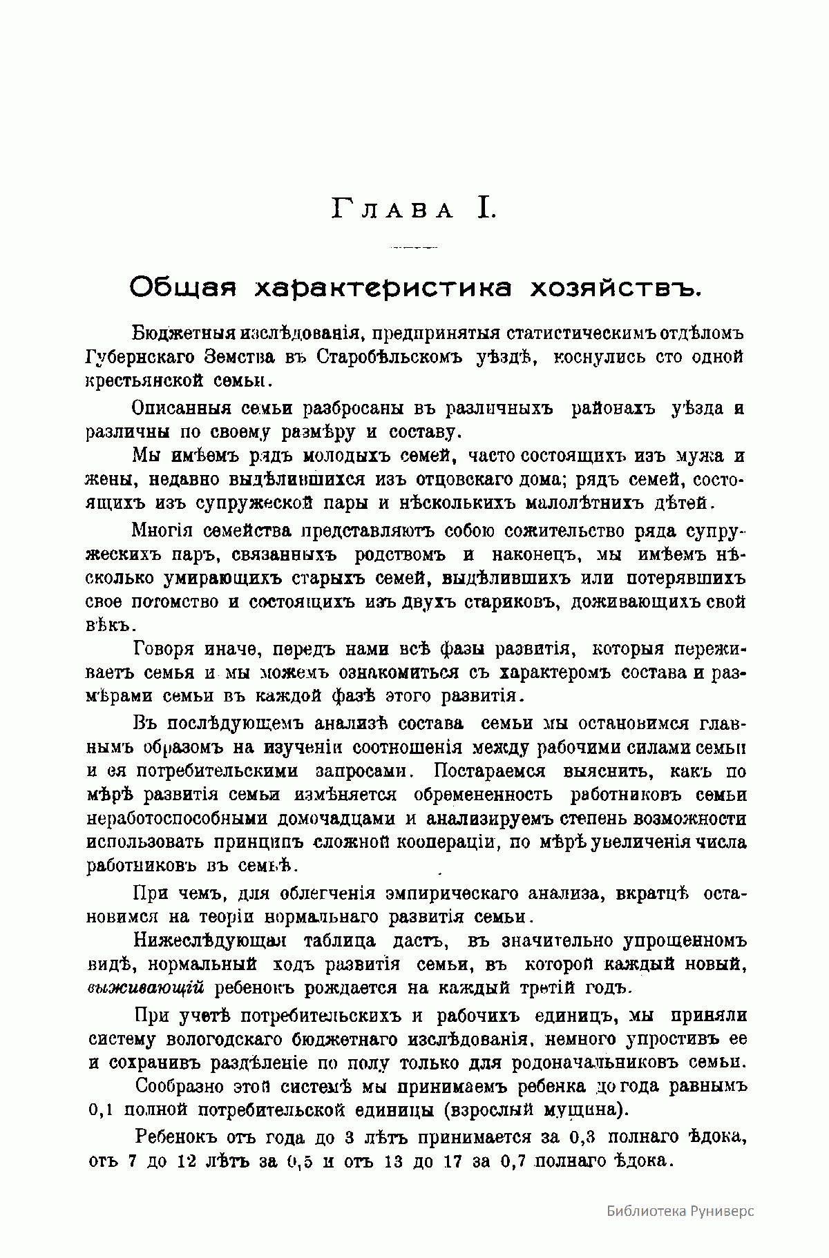 В 1911 г. он дает классическое определение цели крестьянского хозяйства: «Задачей крестьянского трудового хозяйства является доставление средств существования хозяйствующей семье путем наиболее полного использования имеющихся в ее распоряжении средств производства и рабочей силы.»