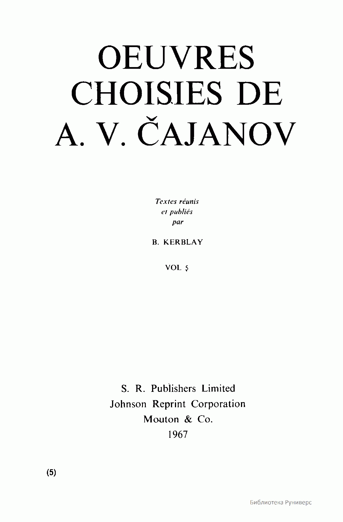 Oeuvres Choisies de A.V. Cajanov. Vol 5