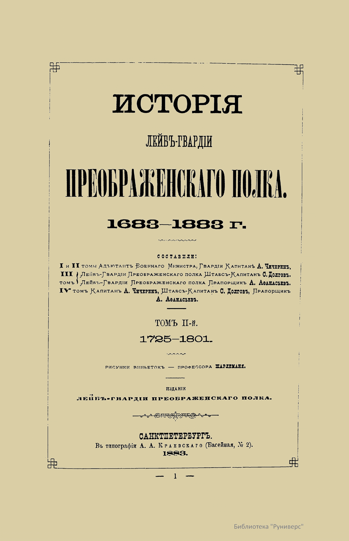 Исторiя Лейбъ-гвардiи Преображенскаго полка. 1683-1883 г. Томъ II-й. 1725-1801