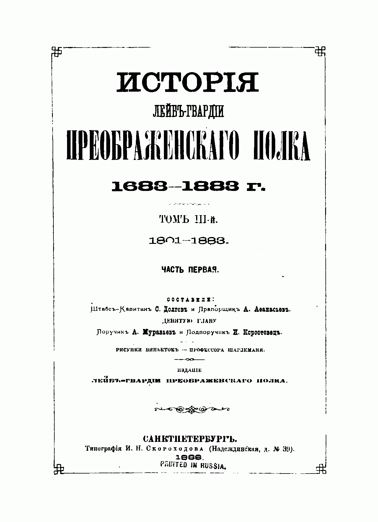 Исторiя Лейбъ-гвардiи Преображенскаго полка. 1683-1883 г. Томъ III-й. 1801-1883