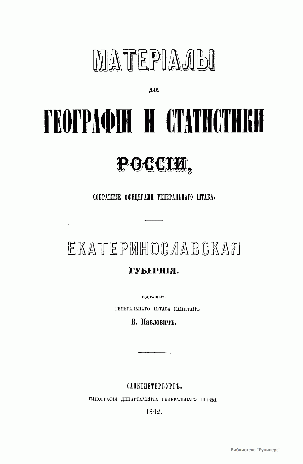 Матерiалы для географiи и статистики Россiи, собранные офицерами Генеральнаго штаба. Екатеринославская губернiя