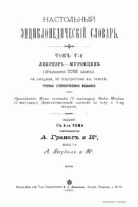 Настольный Энциклопедический Словарь "Гранат" - одна из крупнейших русских универсальных энциклопедий. В 1892 А. Гранат приобрёл издательские права на «Настольный энциклопедический словарь» товарищества "А. Гарбель и К°", выходивший в Москве с 1891, и с 4-го тома издание словаря было продолжено товариществом "А. Гранат и К°". Редакция поставила своей целью сделать Словарь не только справочною, но и образовательною книгою, стремилась, чтобы руководящие статьи заключали в себе весь тот минимум сведений, которым должен располагать образованный человек одинаково по всем отраслям знания. Все, касающееся России, излагалось полнее и всегда в тесной связи с жизнью и развитием других культурных народов. В справочном отделе на первом плане стояла точность, современность и полнота сведений по каждому из слов. Словарь касается всех областей знания: наука, техника, биология, география, этнография, археология, приведены статистические данные по странам и отраслям, биографические сведения и т.д. 8 томов словаря содержат 60 000 статей, 5358 страниц, свыше 1300 иллюстраций (в том числе цветных).