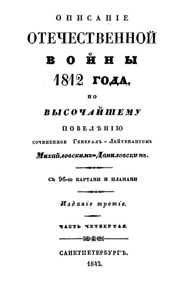 Выдающийся военный писатель и государственный деятель А.Н. Михайловский-Данилевский находился в гуще событий Отечественной войны 1812 , будучи адъютантом князя Кутузова.
