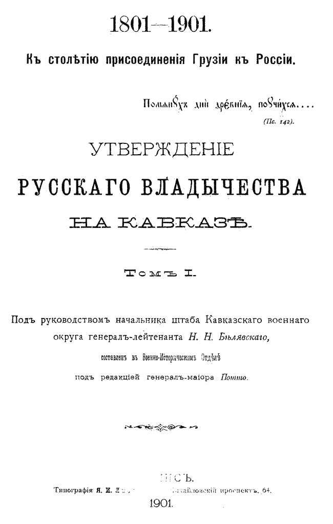 Фундаментальный исторический труд, содержащий историю кавказских войн, а также историю развития гражданского управления Кавказом.