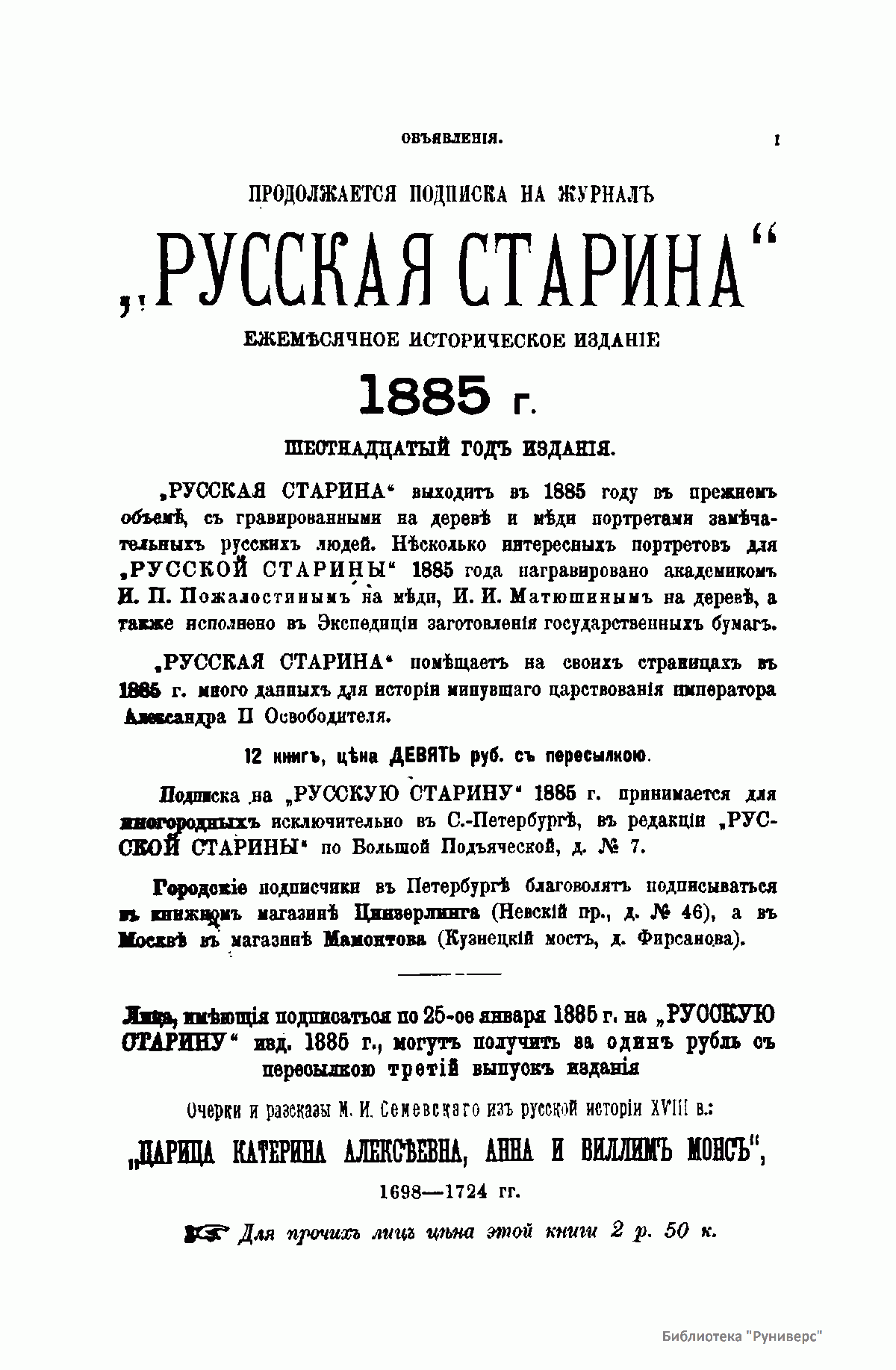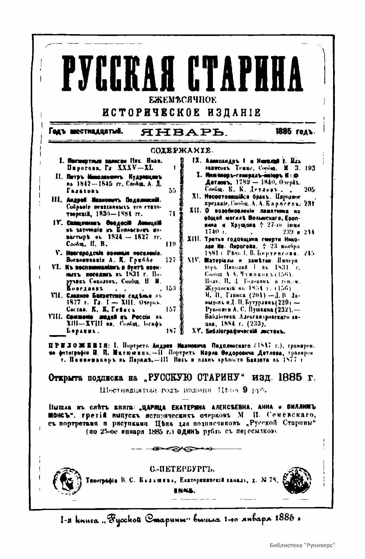 Русская cтарина. Том XLV. 1885. Выпуски 1-3