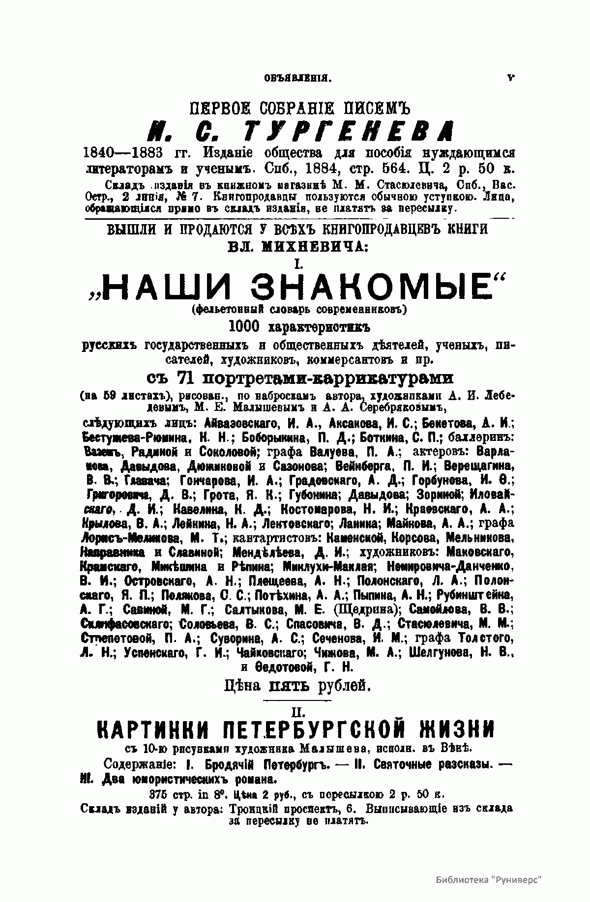К истории искусства относятся записки М. И. Глинки (1870), воспоминания А. Г. Рубинштейна (1889) и известного архитектора А. Л. Витберга (1872), автобиографии И. П. Пожалостина (1881) и Л. А. Серякова (1875), записки И. К. Айвазовского (1878, 1881), Ф. И. Иордана (1891), Ф. Г. Солнцева (1876), воспоминания В. В. Самойлова (1875), П. А. Каратыгина (1872-1877, 1879), Л. Л. Леонидова (1886, 1888), записки Л. П. Никулиной-Косицкой (1878) и др.