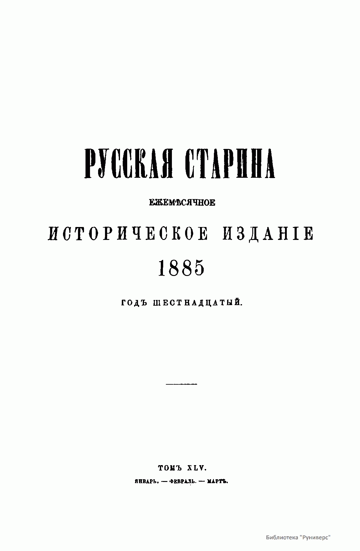 Русская cтарина. Томъ XLV. 1885. Выпуски 1-3