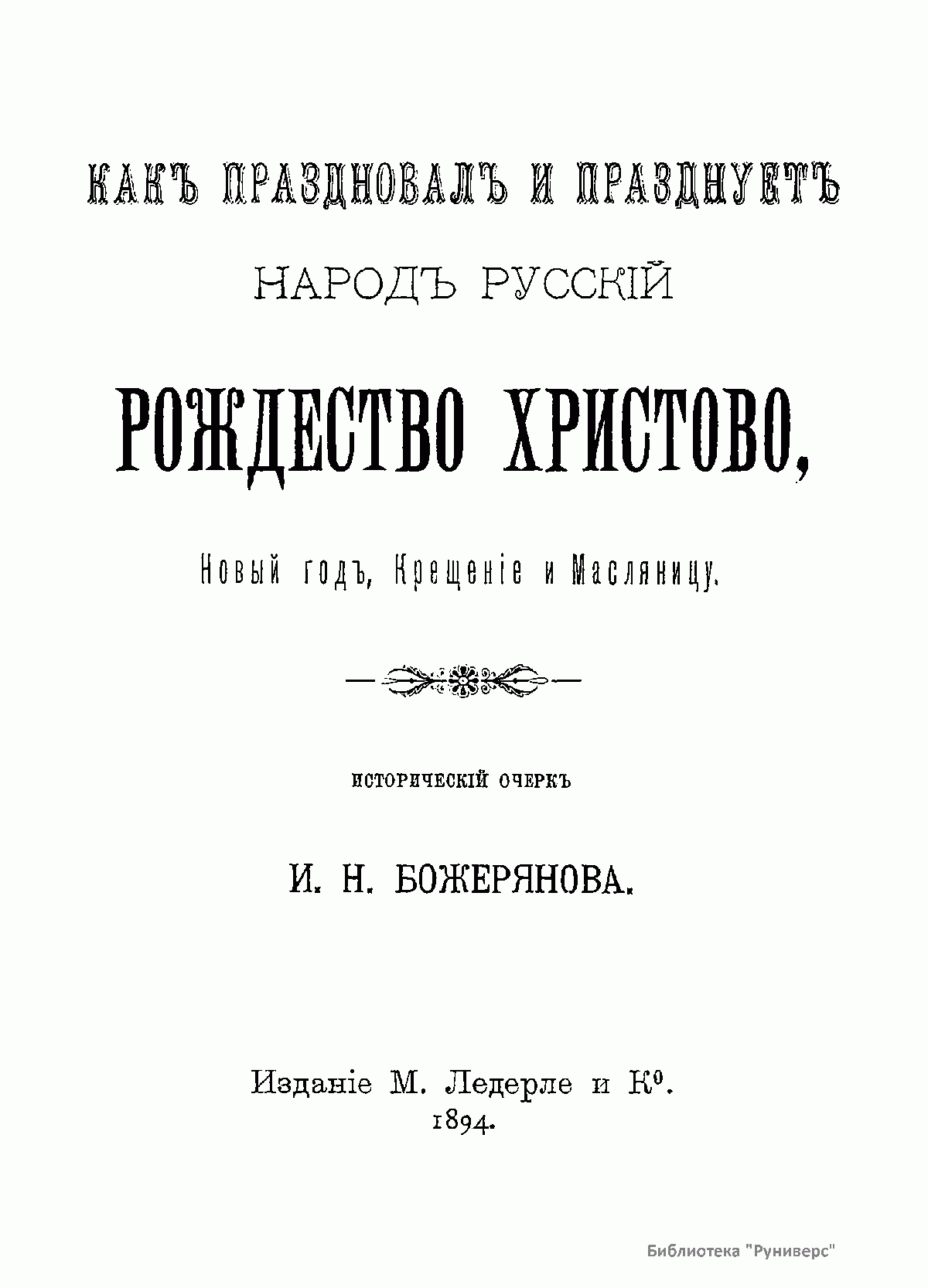 Какъ праздновалъ и празднуетъ народъ русскiй Рождество Христово, Новый годъ, Крещенiе и Масляницу