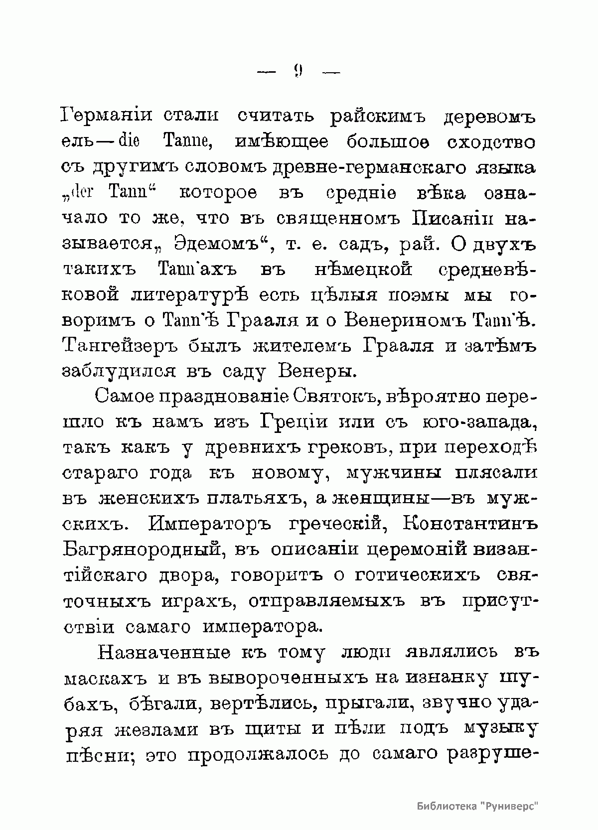 «Гулянье под Новинским, как и теперь, начиналось от Кудринской площади. В начале гулянья красовалась деревянная изящная кофейная, которую содержал известный в то время трактирщик С.И. Печкин. Кофейная эта во время всего гулянья постоянно была набита самым отборным обществом и отъявленными франтами-кутилами. Музыка, цыгане оглашали воздух, а удалая молодежь бросала деньги как щепки, и шампанское лилось рекой». В издании в увлекательной форме рассказана история русских праздников. Книга заключает шесть глав: Рождество; новолетия; новогодние издания или альманахи; Крещение; масленица; празднование масленицы в столицах Москве и Петербурге. Кроме описания русских и «заморских» забав, мелких колоритных бытовых подробностей, дворцовых церемоний, церковных обычаев, читатель найдет и увлекательные истории, связанные с именами Петра Первого, Елизаветы Петровны, Анны Иоанновны, Екатерины Второй.