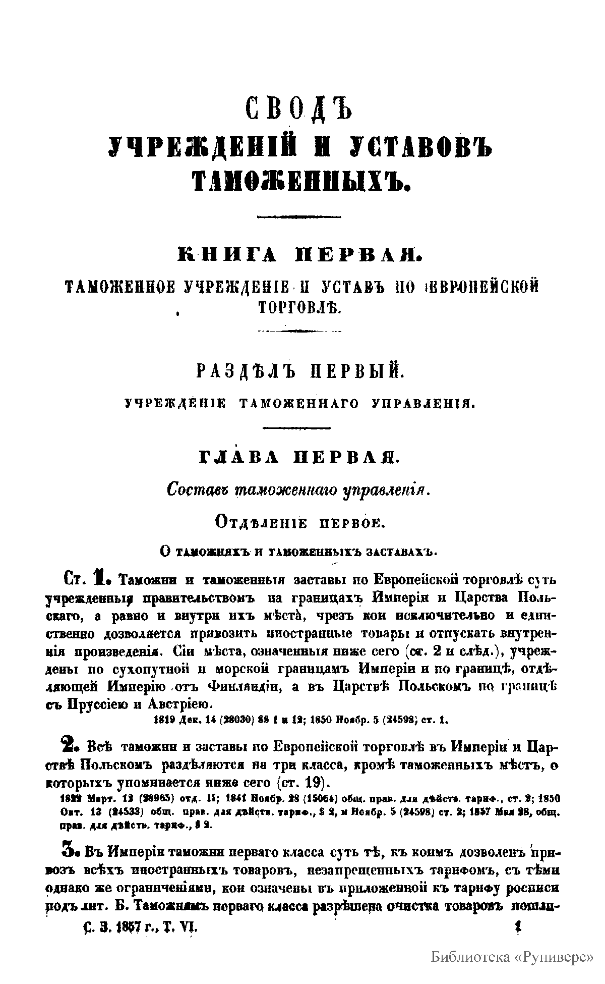 Свод законов Российской империи. Том шестой. Уставы таможенные