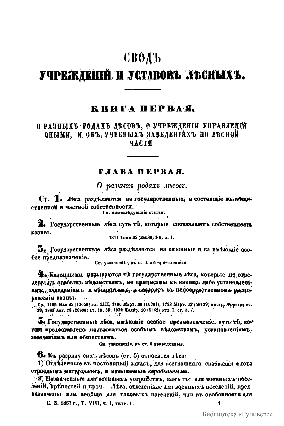 Сводъ законовъ Россiйской имперiи. Томъ восьмой. Часть I. Уставы лѣсной, оброчныхъ статей, и уставъ казенныхъ населенныхъ имѣній въ западныхъ и прибалтійскихъ губерніяхъ