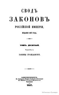 Свод законов Российской империи. Том десятый. Часть I. Законы гражданские