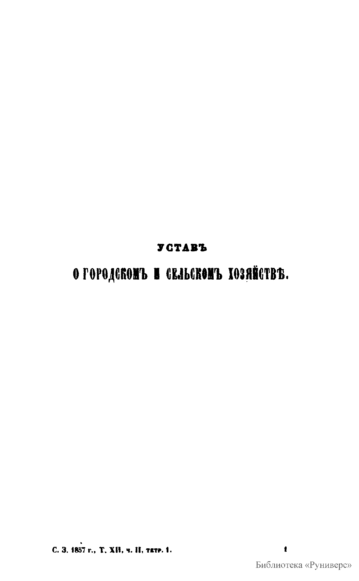 Сводъ законовъ Россiйской имперiи. Томъ двѣнадцатый. Часть II. Уставы о городскомъ и сельскомъ хозяйствѣ, о благоустройствѣ въ казенныхъ и казачьихъ селенiяхъ, и о колонiяхъ иностранцевъ въ имперiи