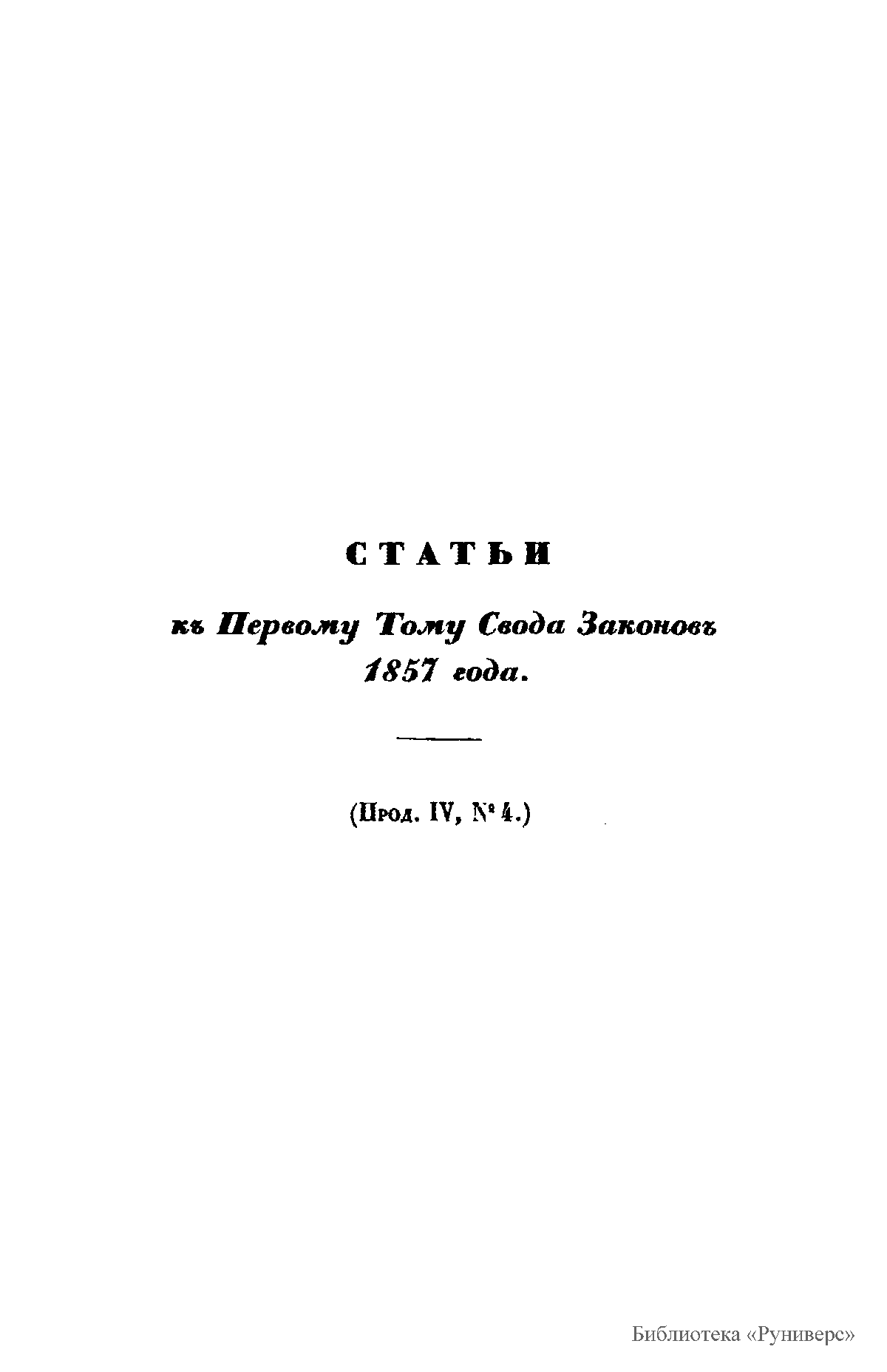 Продолженiе свода законовъ Россiйской имперiи, изданнаго въ 1857 году. Продолженiе №IV. №4. Съ 1 октября по 31 декабря 1860 года