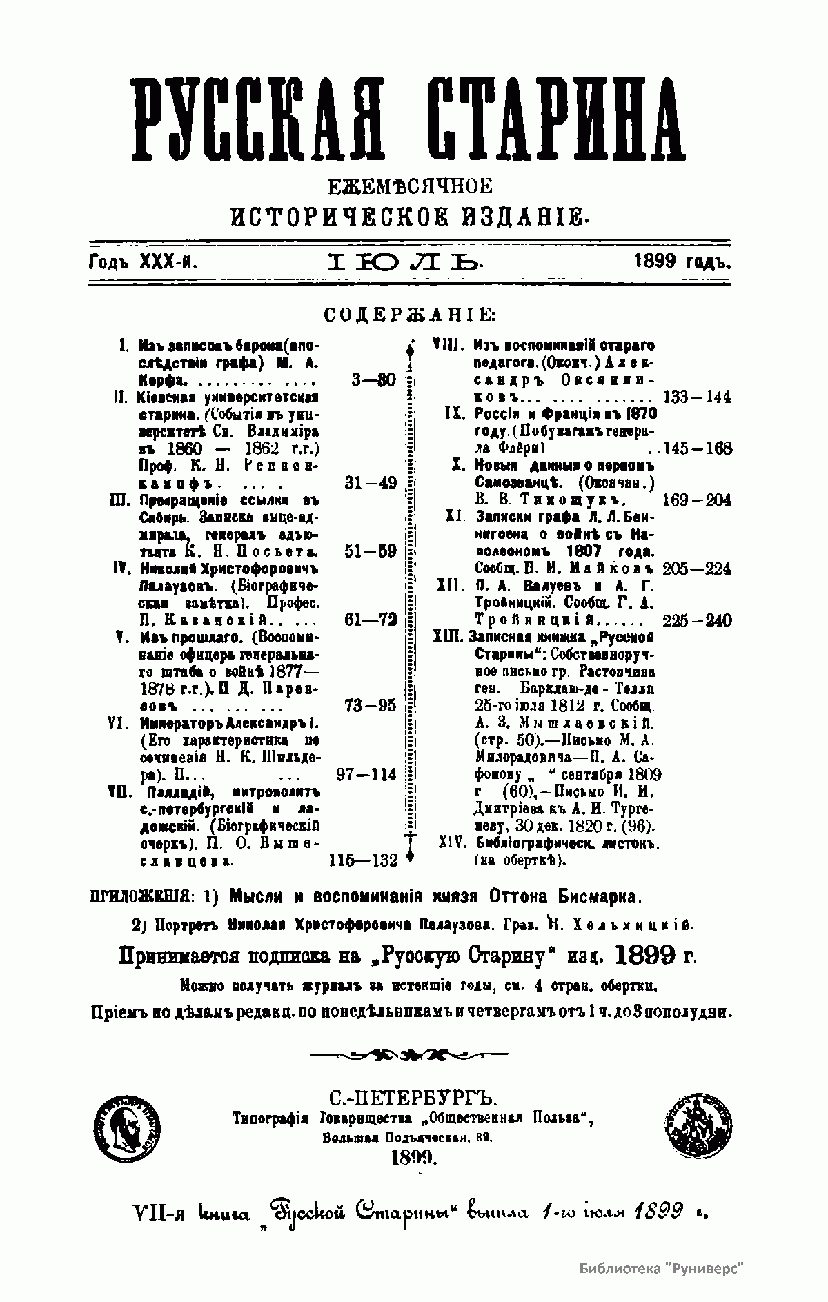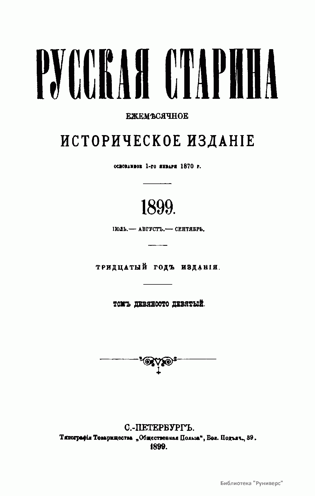 Русская старина. Том XCIX. 1899. Выпуски 7-9