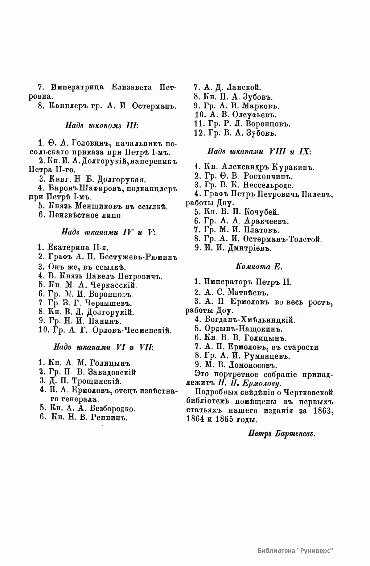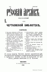 «Русский архив» — ежемесячный историко-литературный журнал, издававшийся в Москве с 1863 по 1917 год. Создателем и продолжительные годы редактором журнала был П. И. Бартенев – историк, археограф, библиограф. Этот журнал называли «живой картиной былого», поскольку он содержал преимущественно публикации неизданных мемуарных, эпистолярных, литературно-художественных и ведомственных документальных материалов, освещавших культурную и политическую историю России в XVIII и XIX вв. По числу опубликованных источников «Русский архив» стоит на первом месте среди русских исторических журналов.