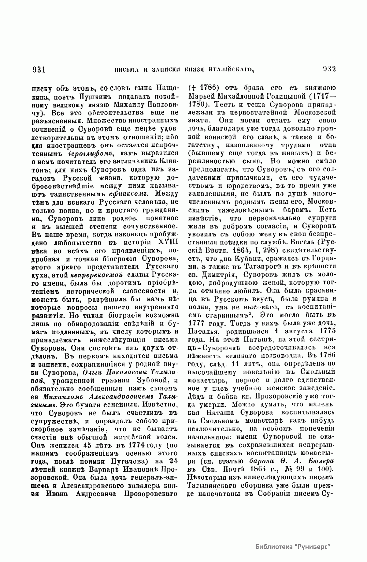 «Русский архив» — ежемесячный историко-литературный журнал, издававшийся в Москве с 1863 по 1917 год. Создателем и продолжительные годы редактором журнала был П. И. Бартенев – историк, археограф, библиограф. Этот журнал называли «живой картиной былого», поскольку он содержал преимущественно публикации неизданных мемуарных, эпистолярных, литературно-художественных и ведомственных документальных материалов, освещавших культурную и политическую историю России в XVIII и XIX вв. По числу опубликованных источников «Русский архив» стоит на первом месте среди русских исторических журналов.