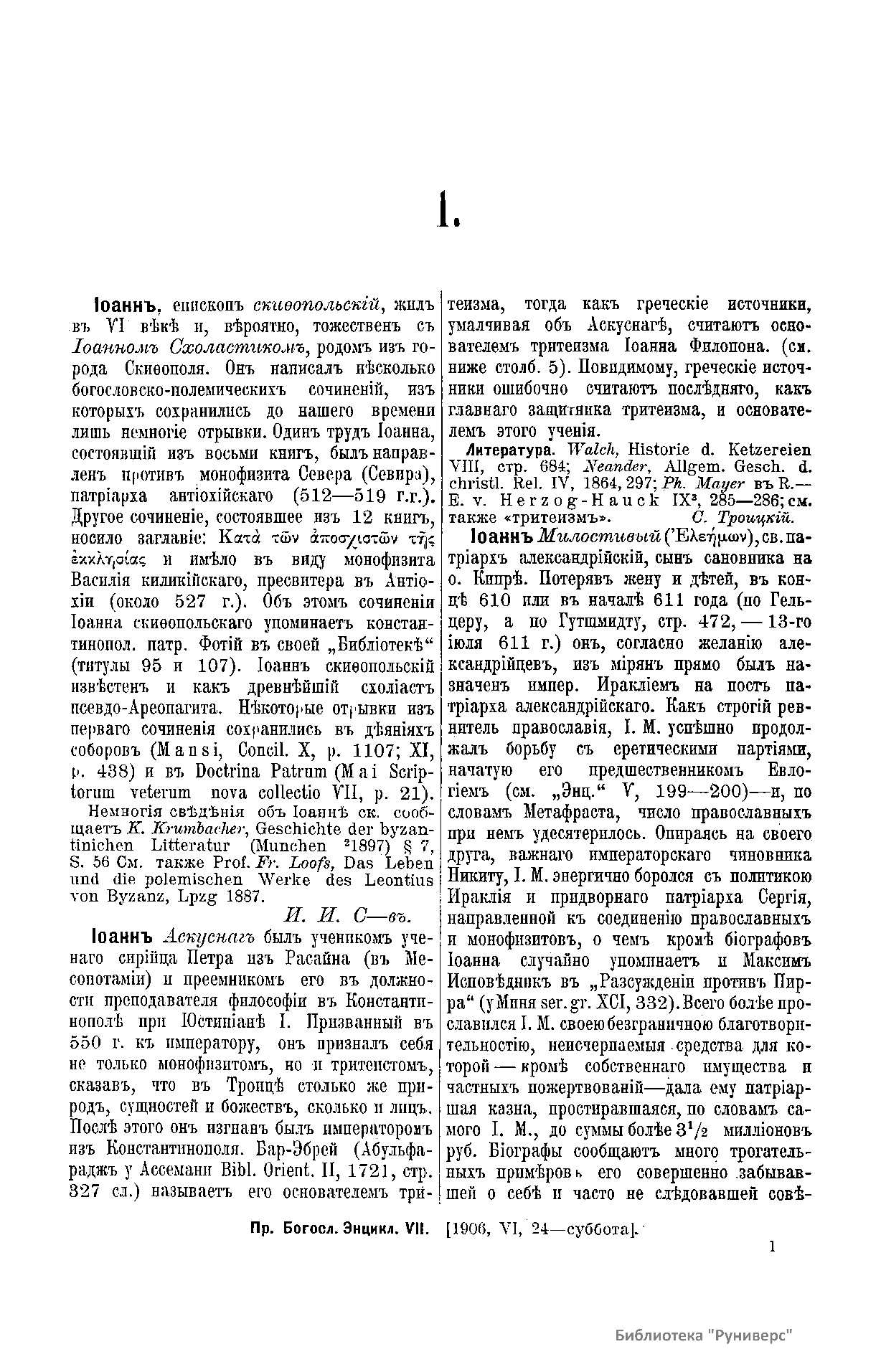 Православная богословская энциклопедiя. Томъ VII. Иоаннъ Скиѳопольскiй - Календарь