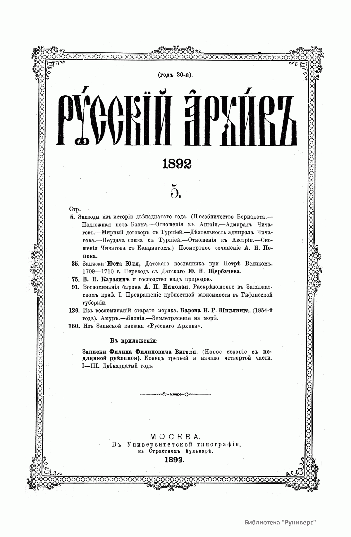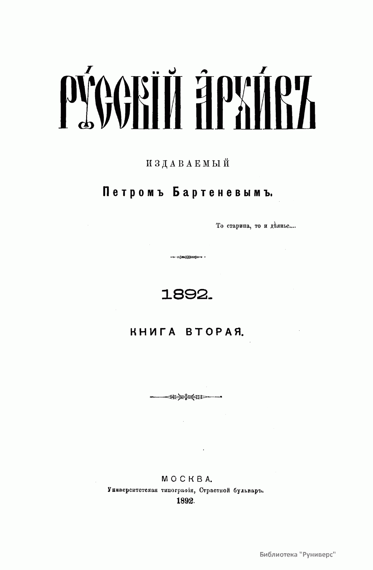 Русскiй архивъ. Историко-литературный сборникъ. 1892. Выпуски 5-8