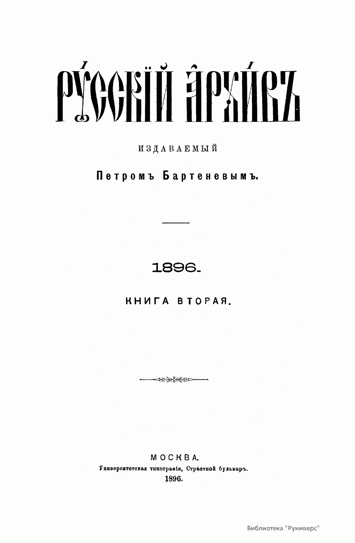 Русскiй архивъ. Историко-литературный сборникъ. 1896. Выпуски 5-8