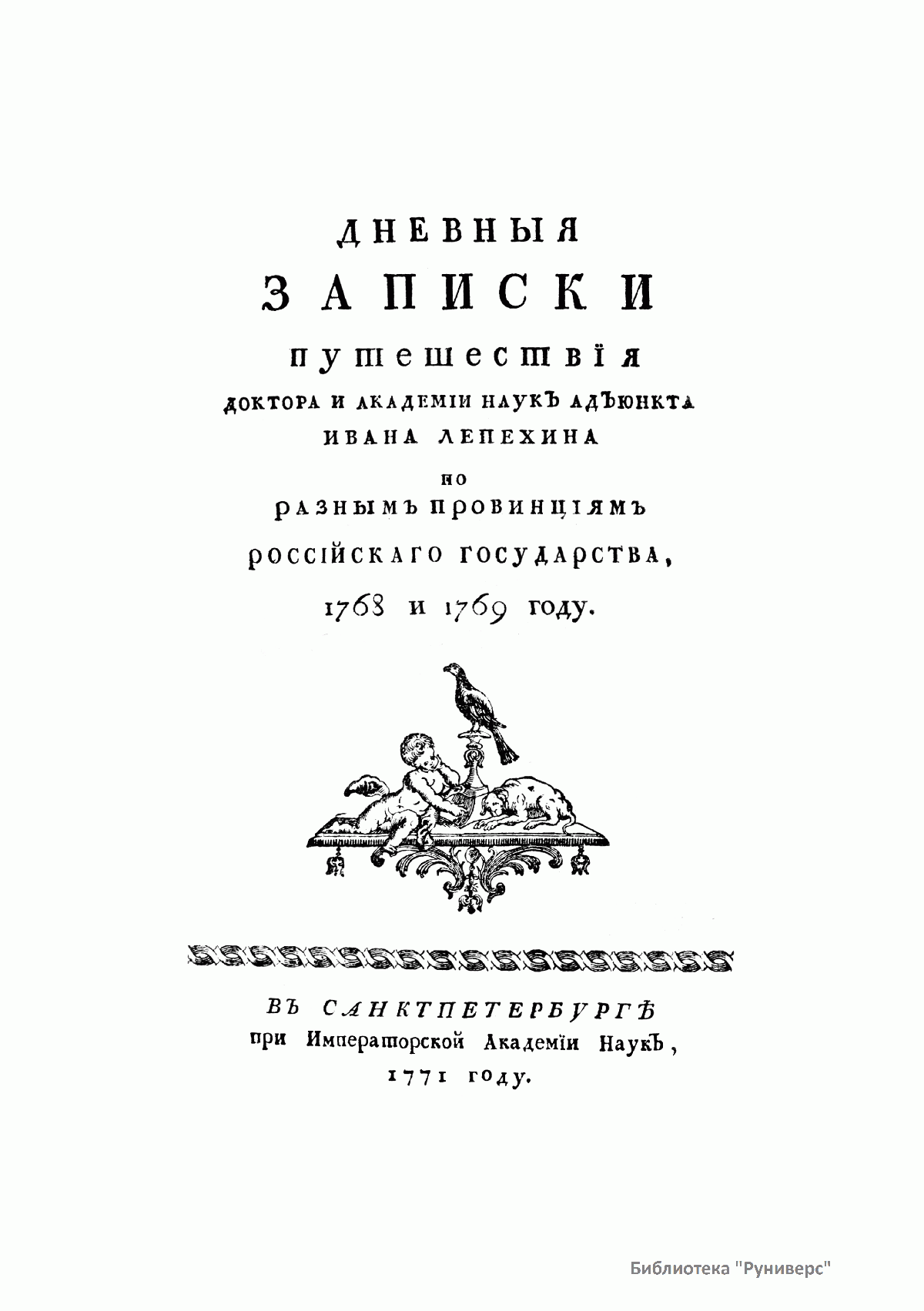 Дневныя записки путешествiя доктора и Академiи Наукъ адъюнкта Ивана Лепехина по разнымъ провинцiямъ Россiйскаго государства