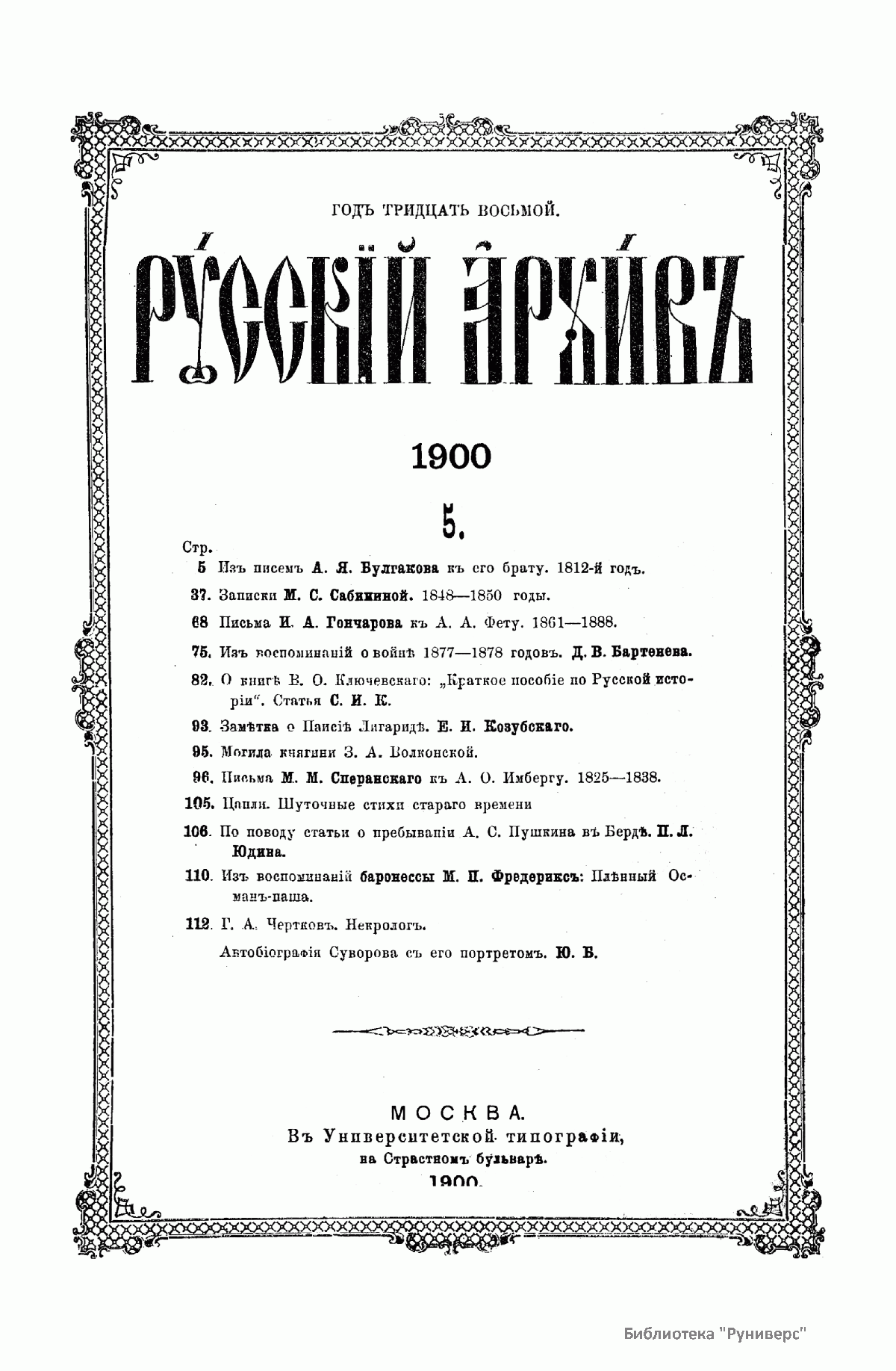 Русскiй архивъ. Историко-литературный сборникъ. 1900. Выпуски 5-8