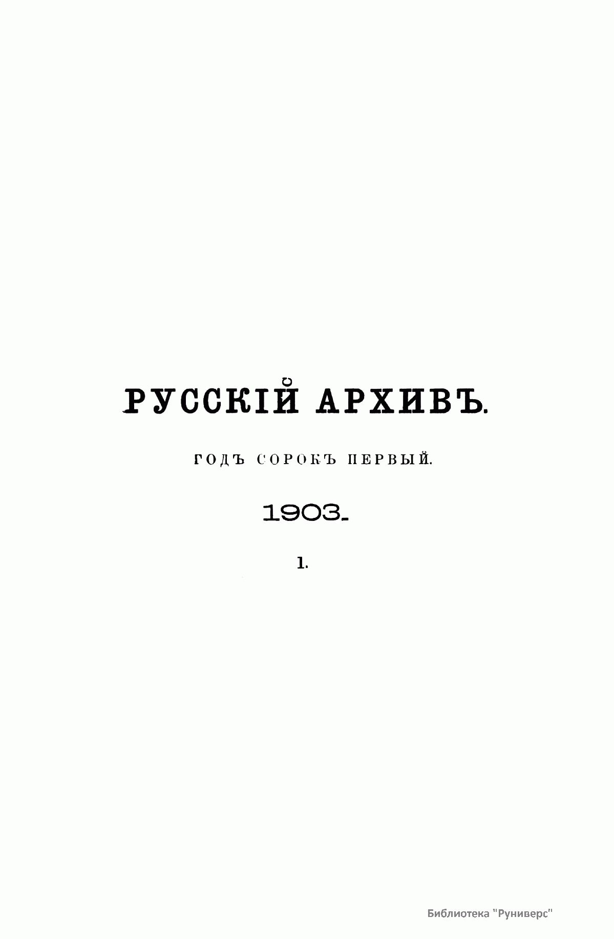 Русский архив. Историко-литературный сборник. 1903. Выпуски 1-4