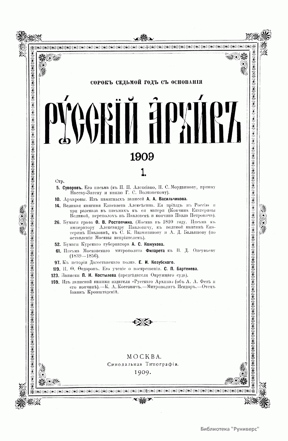 Русскiй архивъ. Историко-литературный сборникъ. 1909. Выпуски 1-4