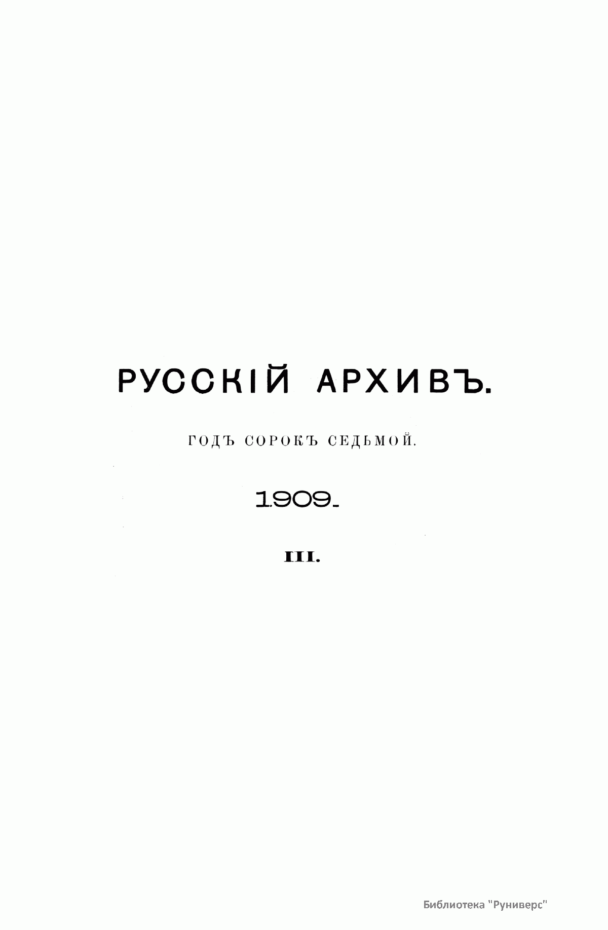 Русскiй архивъ. Историко-литературный сборникъ. 1909. Выпуски 9-12