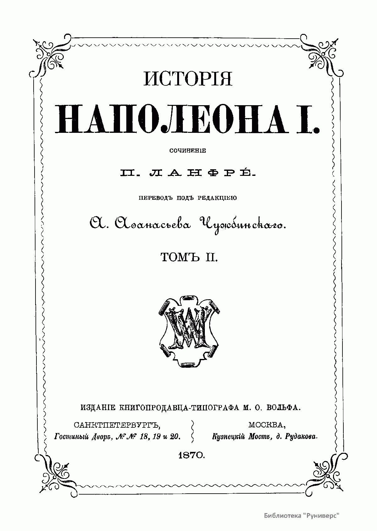 Издание книгопродавца-типографа М.О. Вольфа