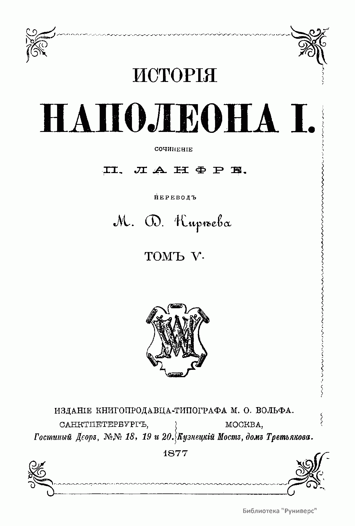 Издание книгопродавца-типографа М.О. Вольфа
