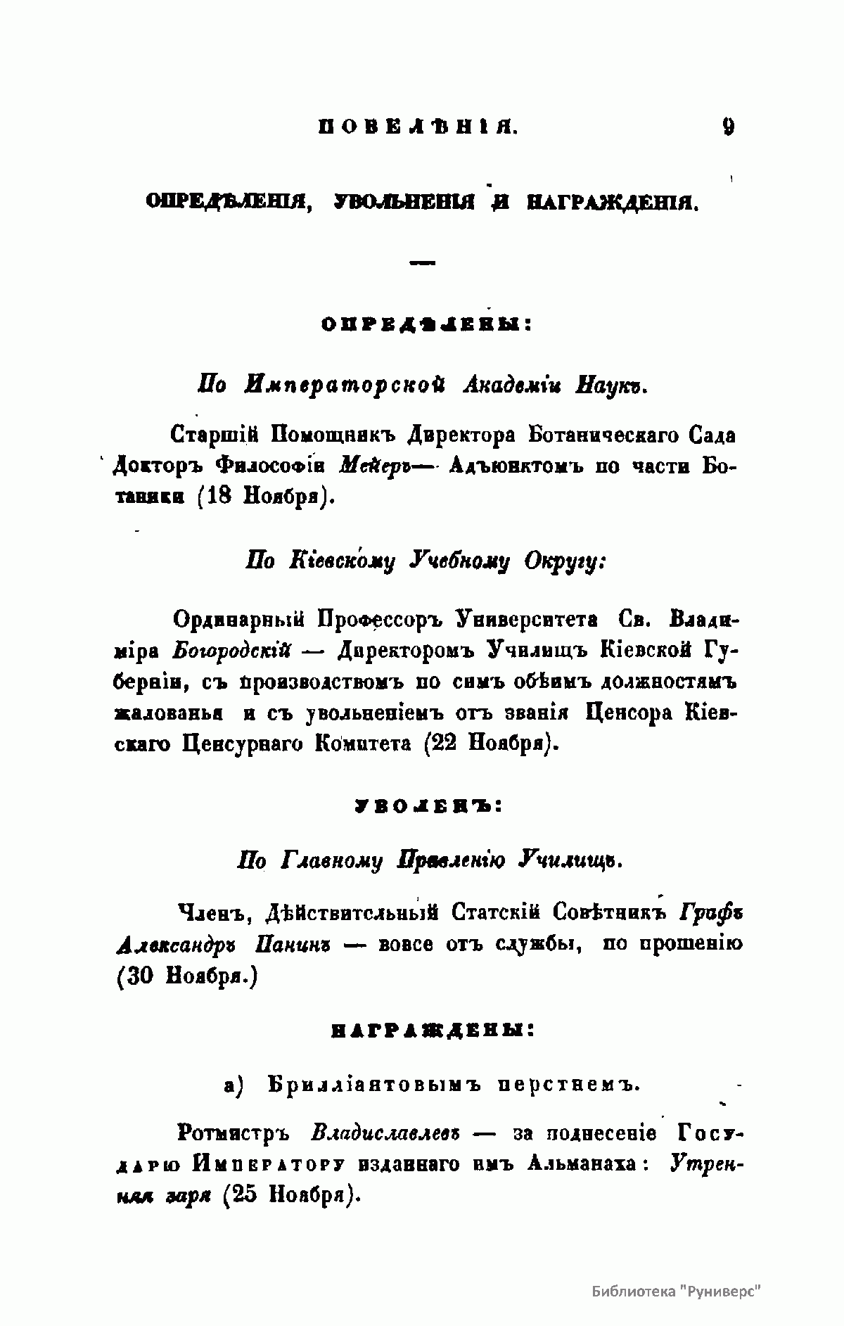 1. «Записки Департамента народного просвещения». Вышло в свет три книги этого издания – в 1825, 1827 и 1829-м годах.