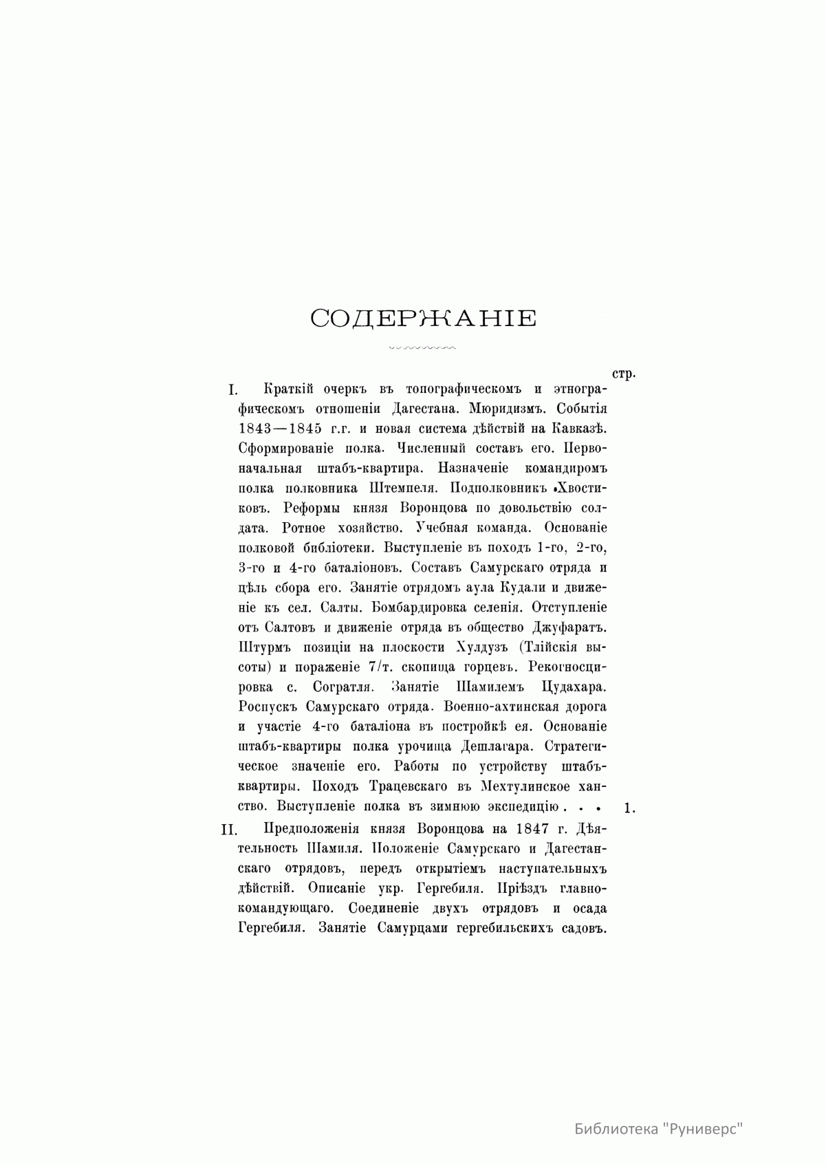 При составлении истории Самурского полка материалы были получены из полкового архива, архива Кавказского окружного штаба, большую помощь в составлении книги автору оказал «Кавказский сборник», издаваемый военно-историческим отделом Кавказского военного округа. За время существования Самурского полка на его долю выпала широкая боевая деятельность. Автор, придерживаясь последовательности в изложении истории, с одинаковой подробностью и яркостью изложил каждый период жизни полка, уделив внимание как боевой службе, так и внутреннему быту.