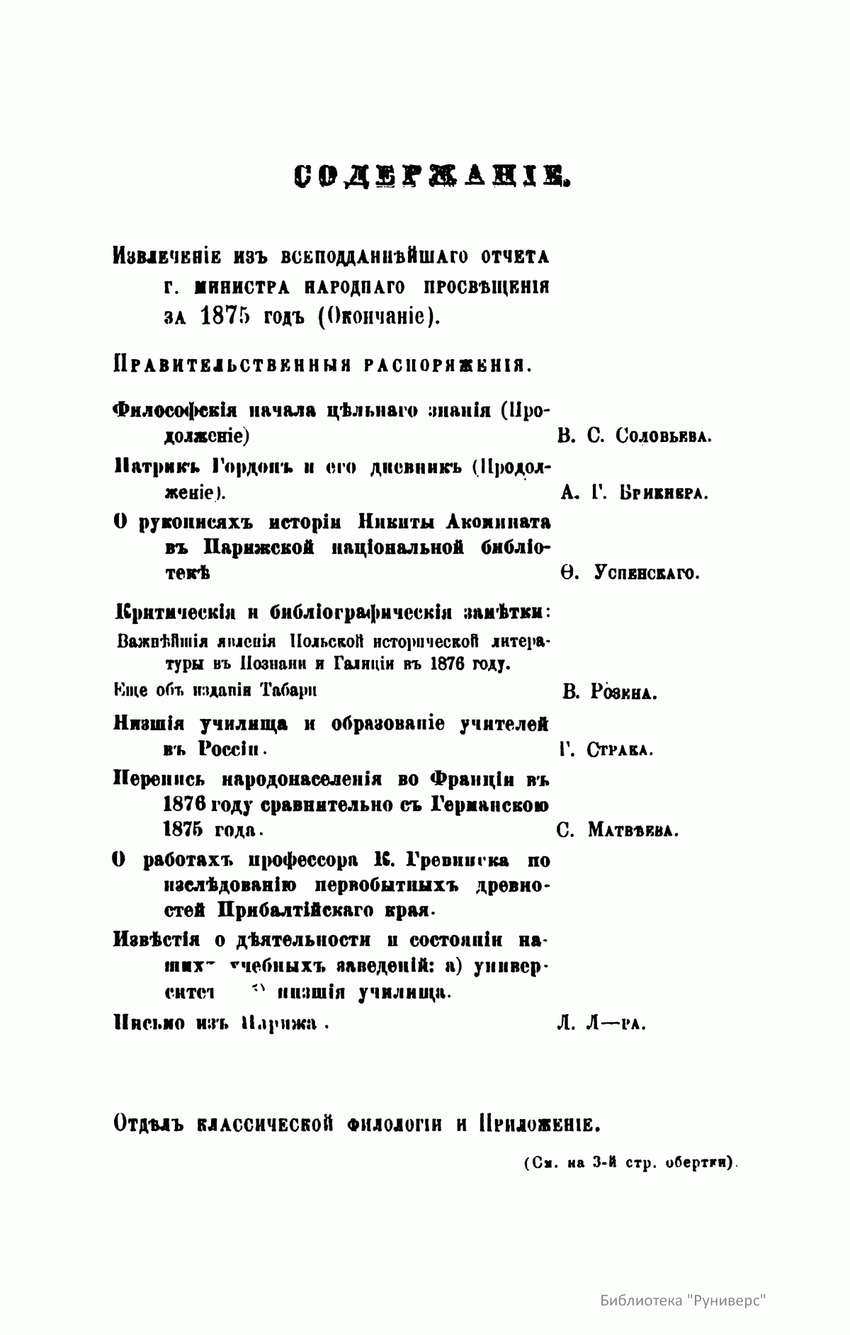 С 1864 года стали выходить указатели к повременным изданиям Министерства народного просвещения начиная с 1803 года.