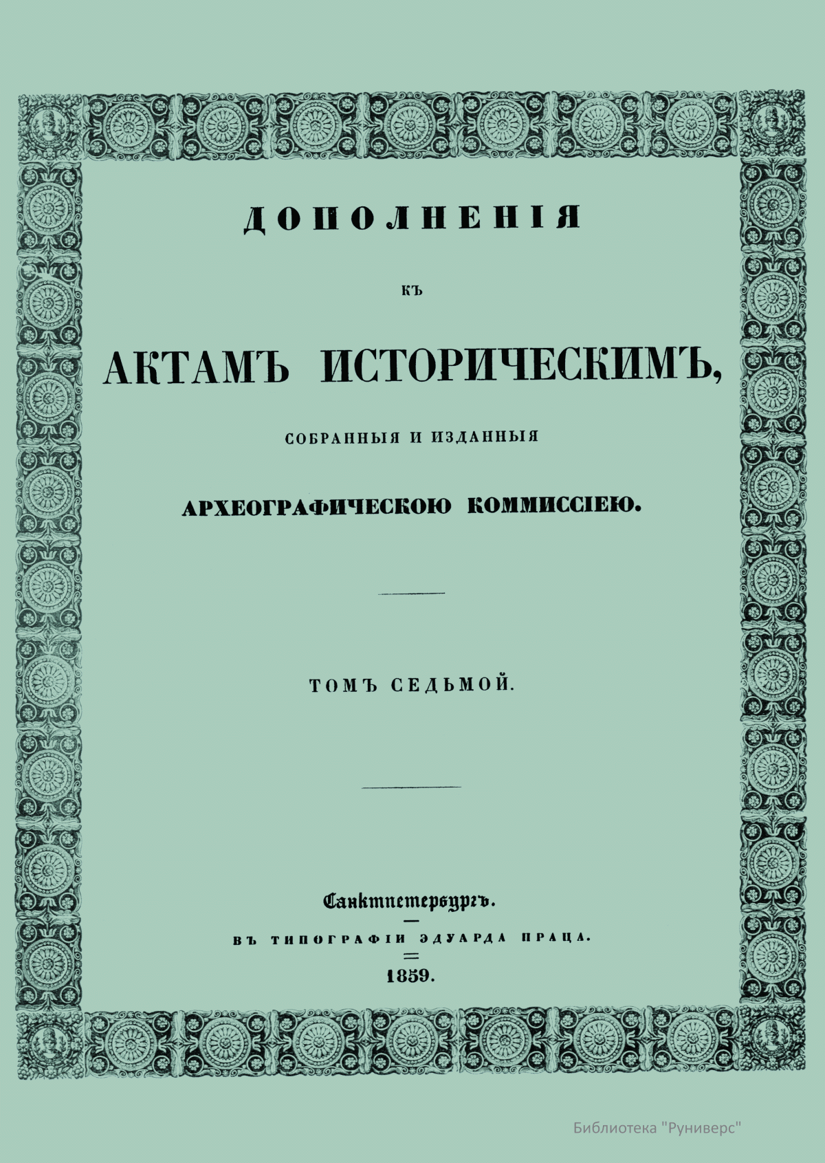 Дополненiя къ актамъ историческимъ, собранныя и изданныя археографическою коммиссiею. Томъ седьмой