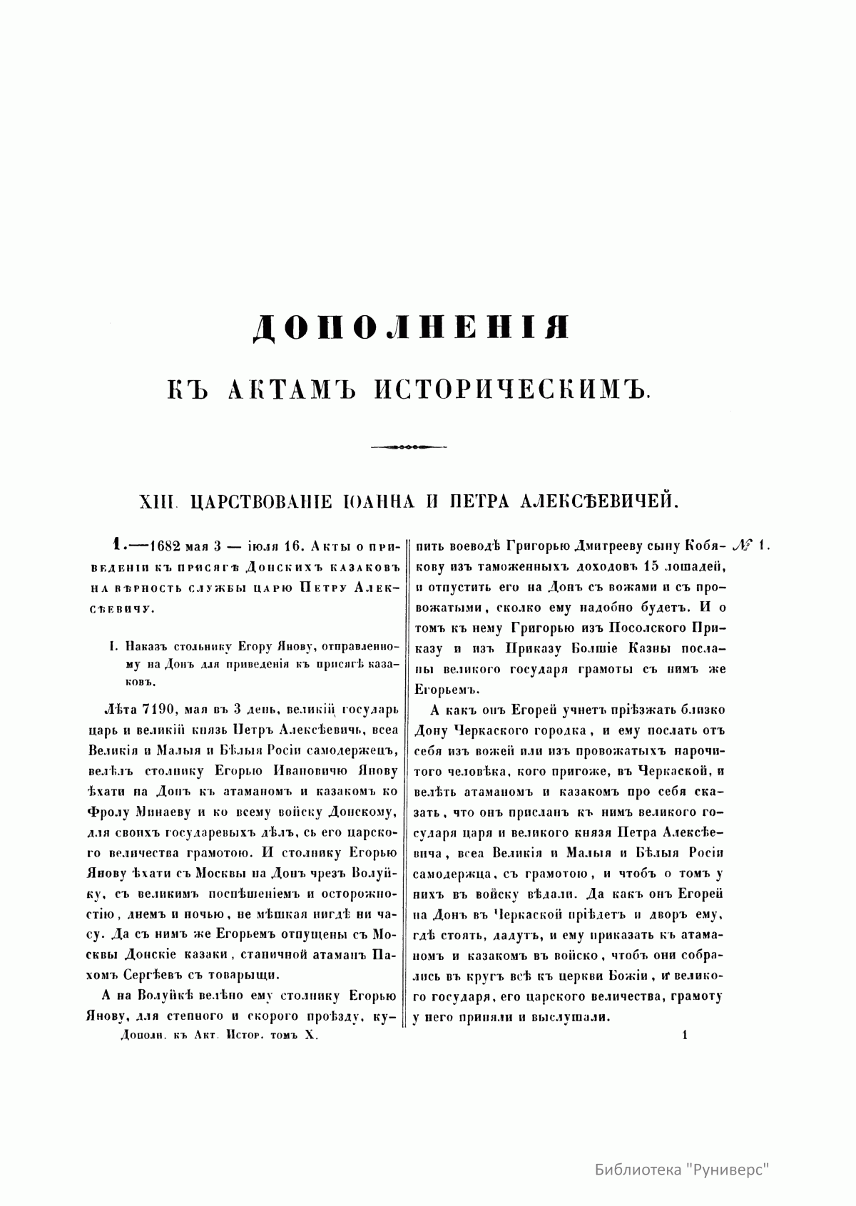 Дополненiя къ актамъ историческимъ, собранныя и изданныя археографическою коммиссiею. Томъ десятый
