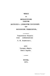 Чтенiя въ Императорскомъ Обществѣ Исторiи и Древностей Россiйскихъ при Московскомъ Университетѣ. 1870. Генварь-Мартъ. Книга первая