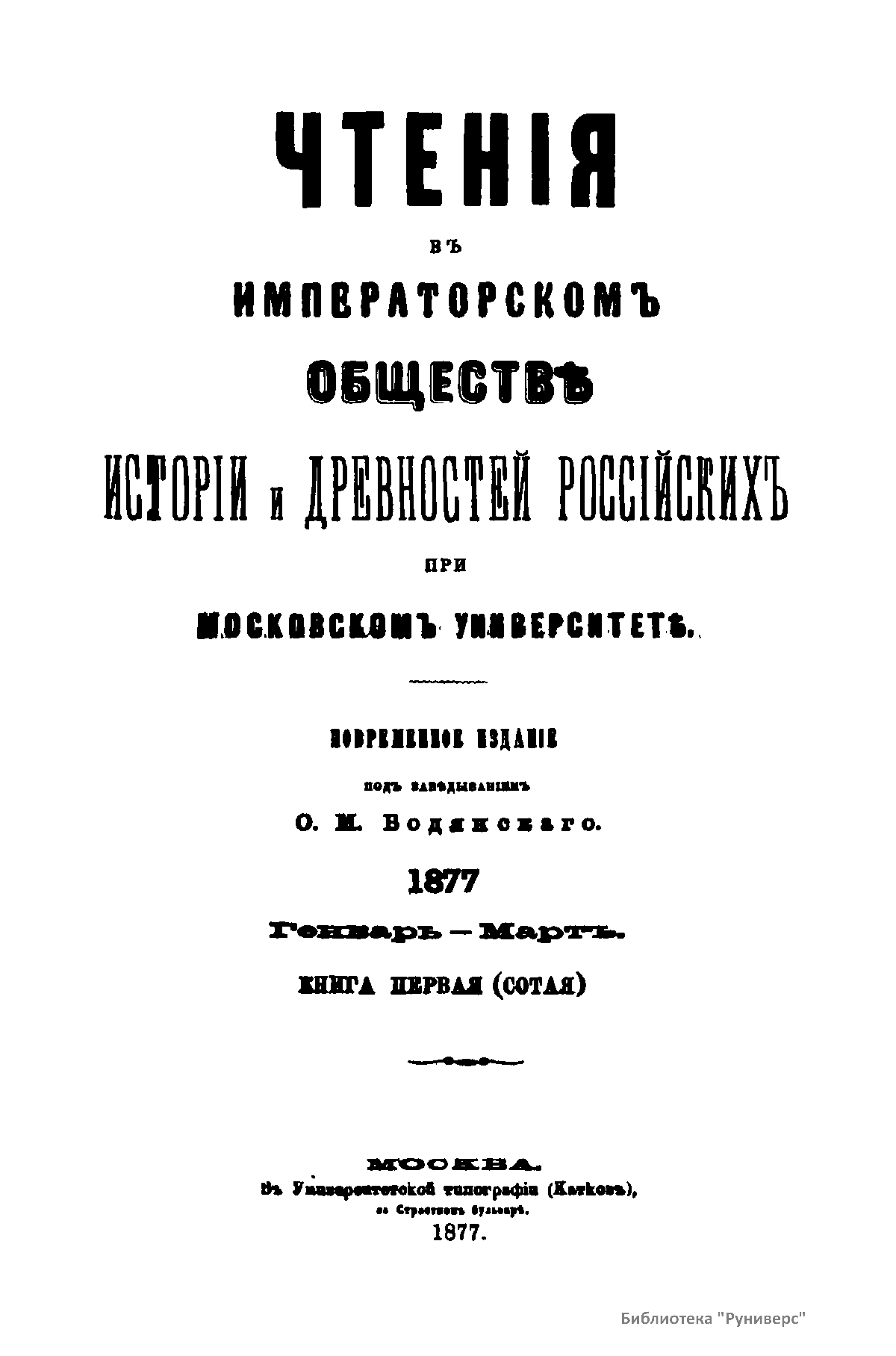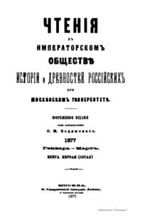 Чтенiя въ Императорскомъ Обществѣ Исторiи и Древностей Россiйскихъ при Московскомъ Университетѣ. 1877. Генварь-Мартъ. Книга первая
